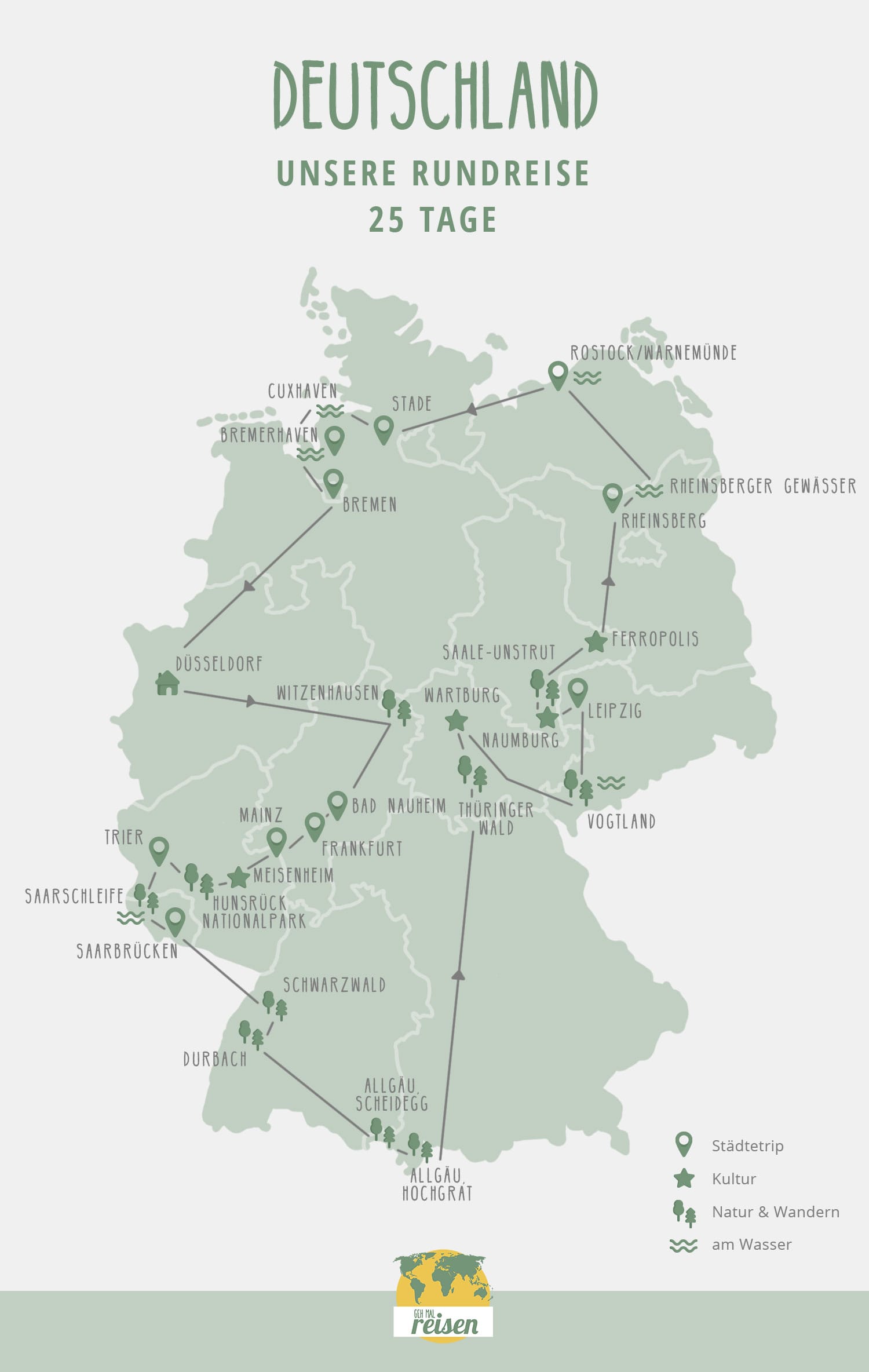 Durch 12 Bundesländer sollte die Reise gehen: Die Vielfalt der Heimat entdecken und ein Einblick in ein paar der schönsten Urlaubsziele und Ecken Deutschlands bekommen!